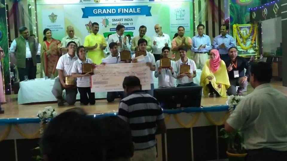 Smart India Hackathon 2017 Organized by NCPCR, AICTE, MHRD,Child rights violation related news on one portal,Team members Gourav Tiwari, Alokik Yadav, Amey Satpute, Charu Shrivastava, Akshay Tetu, Amit Dhakad on 1,2-4-2017 First Runner up Prize 75000/-.Global Certification Materials(Technology Tree)